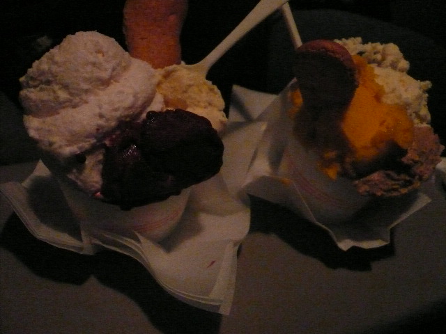 外の吹雪を眺めながら暖かい車内で食べるジェラートもなかなか(爆)