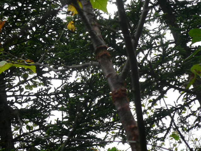 樹種不明ですが、となりの樹に結構いましたので不時着個体かと。