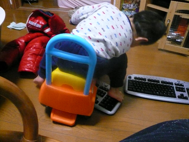 ロッククローリングの真似して壊れたキーボードの上に乗っかっております。