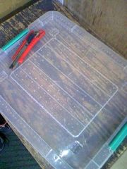 まずは衣装ケースの蓋を、枠以外カッターで切り落とし、