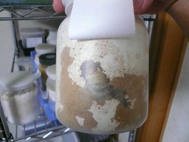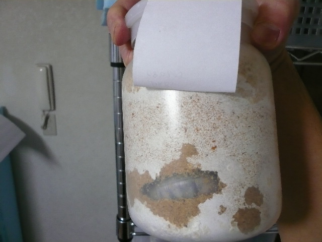 開始5分(嘘)で見つけました、どうやらガラス瓶(inアンテ幼虫)の蓋のフィルターが若干剥がれていて、