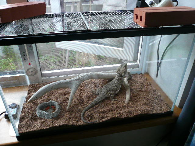ふとし君のケースを洗って床材も入れ替え、ライトも交換しました。