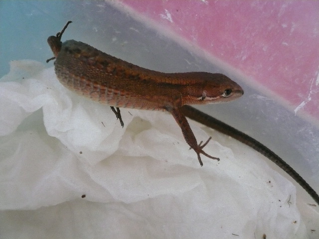 付近にトカゲが生息している環境は思い当たらないので、誰かが飼ってたトカゲが逃げたのか?